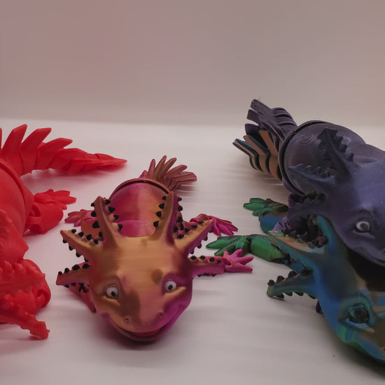 The Smiling Axolotl Fidget Toy makes a great gift and will bring a smile to any Axolotl lover's face each time it moves! The articulated Axolotl toy is made from hardwearing 3D printed plastic and the beautiful design gives it a vibrant appearance, making it an eye-catching addition to any Axolotl fan's collection.