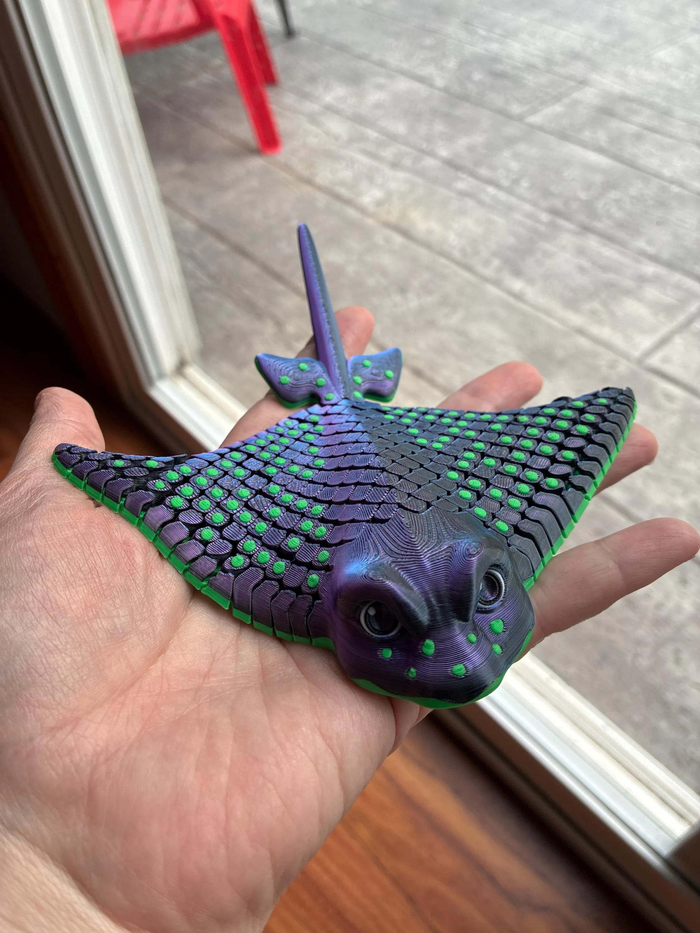 Introducing our meticulously crafted **3D Stingray**, a stunning blend of artistic creativity and playful design. This 3D printed fidget toy is perfect for marine enthusiasts, anyone who loves the ocean, or simply those looking for a unique desk companion. Each stingray is made from durable, high-quality PLA plastic, ensuring a lightweight yet sturdy feel that can withstand daily use. , this articulated toy moves gracefully with a gentle flick of your hand, making it a delightful addition to any workspace or home décor.